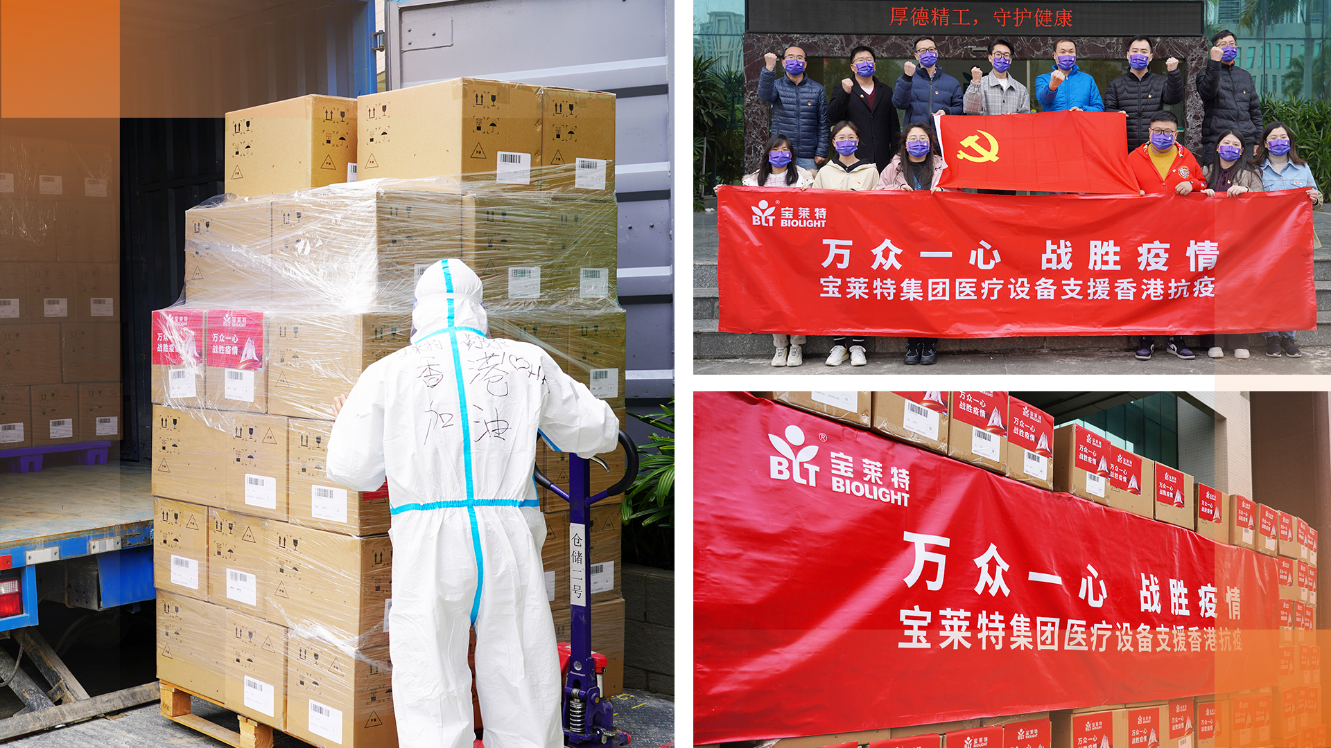 2022年2月,宝莱特集团接到来自内地援港抗疫医疗物资专班供应组的紧急调拨指令后,立刻成立项目组,组织员工返厂恢复生产,并于3月底,向香港调运将近35万部指夹血氧仪,用于关键性的血氧监测。