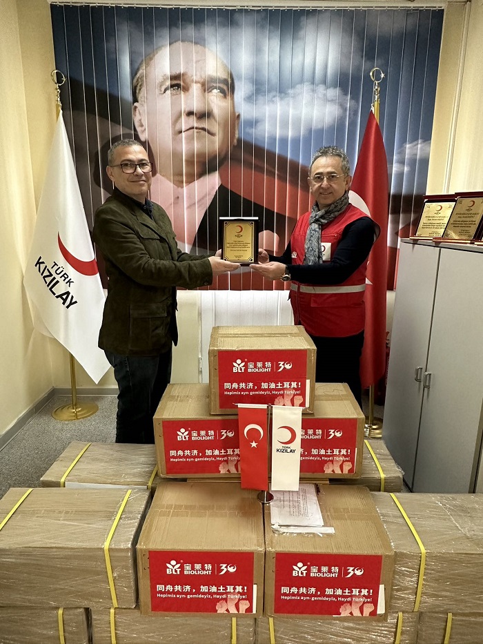 作为中国医疗设备优秀民族品牌,宝莱特集团在土耳其中资企业总商会的带领下,向灾区捐赠一批指夹式血氧仪。2月21日,物资经由土耳其本土员工到达土耳其红新月会,将温暖传递给灾区。