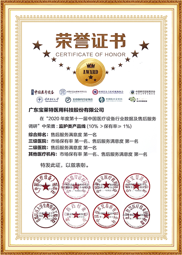 中国医疗设备行业迎来伫立在“中国智造”浪潮的黄金时代,标志着需要更严苛的临床与技术创新融合,促进从以疾病为中心向以病人、健康为中心的转化,医疗设备也应对应寻求转变,才能更好地解决和服务于临床医疗痛点问题。2020年,宝莱特集团研发投入同比增加20.84%,研发人员同比增长10%,截至目前,宝莱特已申请到数百项国内外专利,涵盖宝莱特生命信息与支持及血液透析业务版块产品,并连续12年荣获 “广东省质量信用A类医疗器械生产企业”。近日,宝莱特监护仪S7A、S9A、S10A、S12A、M10、M12,血液透析装置D30、D50获得国家药监局、广东药监局颁发的3项《医疗器械注册证》,这是宝莱特进一步推行研发创新、实施产品高端化、差异化、智能化、物联化、精品化战略的成果,丰富产品品类,提高产品核心竞争力和市场拓展能力。