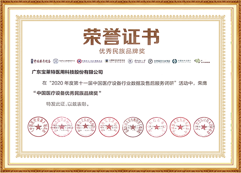 宝莱特以厚德精工的品质坚守和舍利抗疫的企业担当,在2021年第十一届中国医疗设备行业数据大会上荣膺“2020年度中国医疗设备产品线金奖〞“2020年度中国医疗设备优秀民族品牌金奖〞“2020年度中国医疗设备最具社会责任奖”三项大奖。2020年度中国医疗设备行业数据及售后服务调研”活动围绕市场占有率、保有率、客户满意度等进行评分,宝莱特凭借着评分均在4分以上及各大三甲医院和医疗机构售后服务满意度第一名的实力,荣膺中国医疗设备优秀民族品牌金奖、中国医疗设备金奖。这是宝莱特在“中国智造”的浪潮中创变的体现。