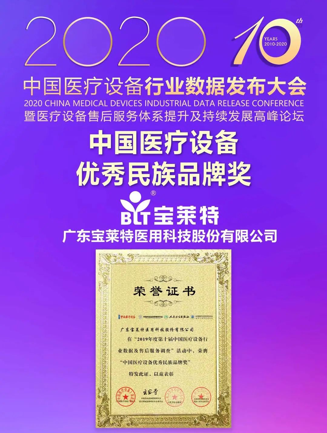 7 月 4 日,第十届中国医疗设备行业数据发布大会暨医疗设备售后服务体系提升及持续发展高峰论坛盛大召开,宝莱特集团在本次“2019年度中国医疗设备行业数据及售后服务调查活动”中荣膺“中国医疗设备优秀民族品牌奖”,子公司武汉启诚荣膺“中国医疗设备民族品牌突破奖”。