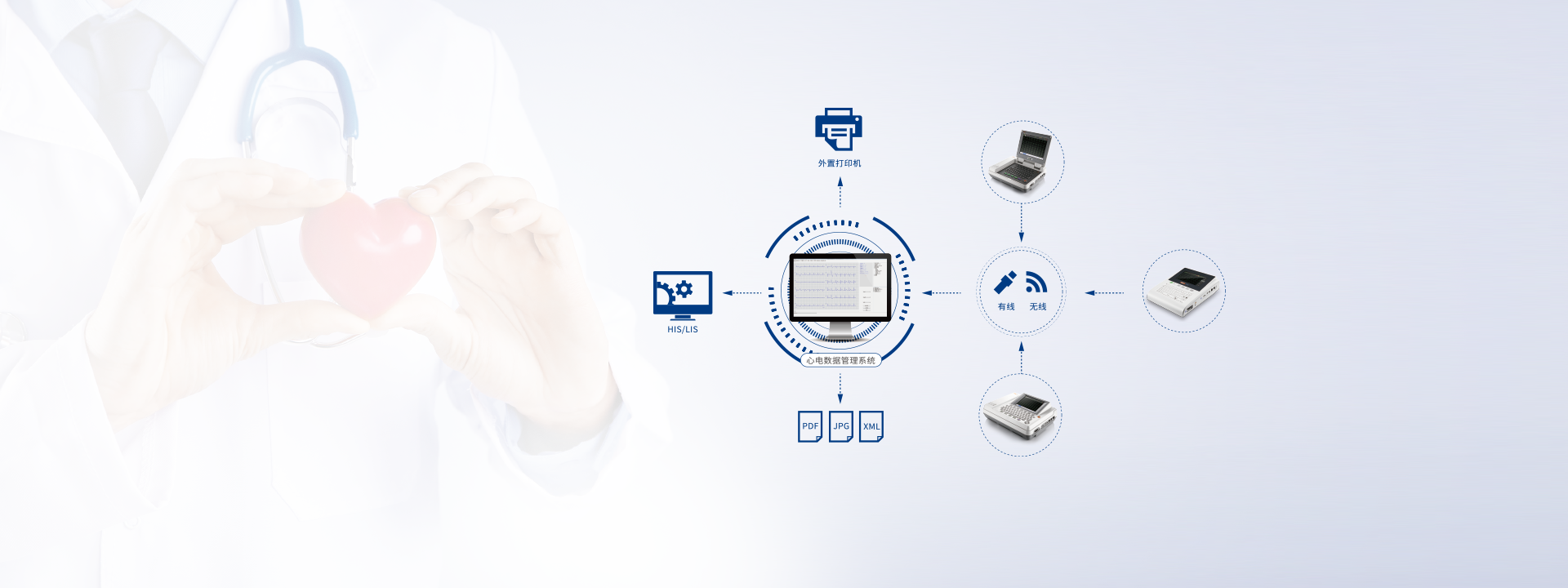 支持各种型号的打印机,导出PDF/JPEG/XML等格式的心电图报告