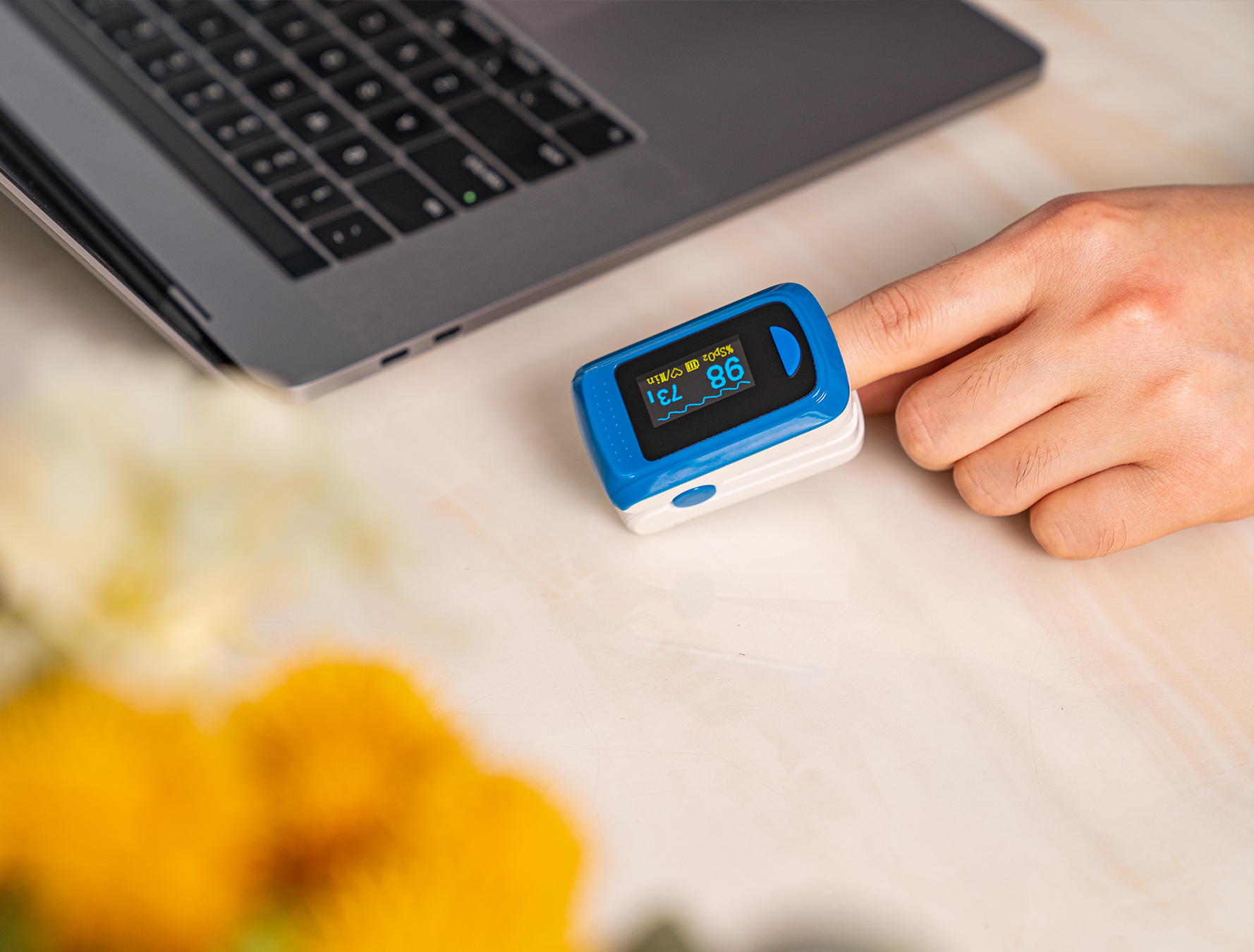 小巧轻便,您可以随身携带这款血氧饱和度监测仪