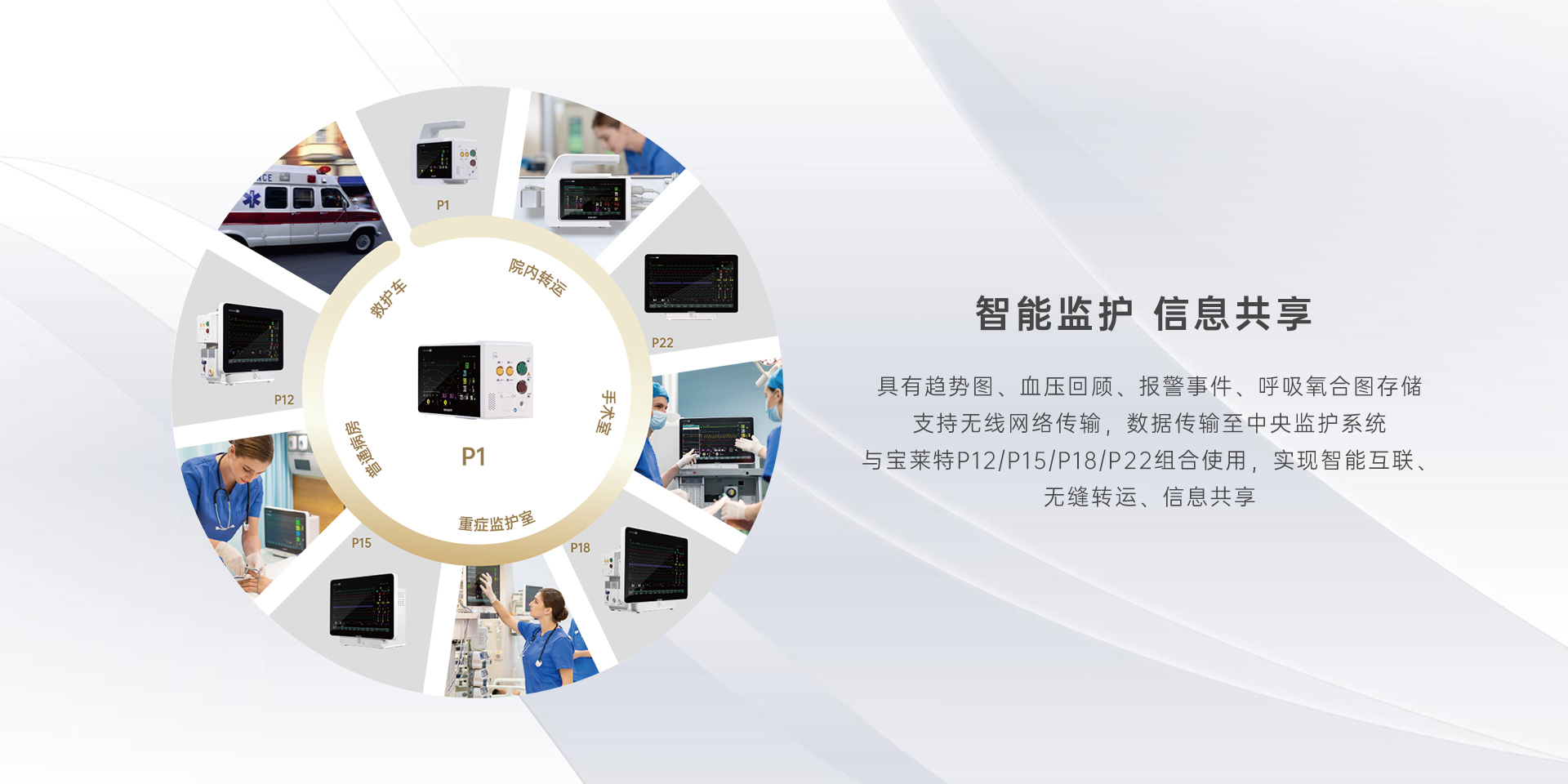 P1病人监护仪以“Patient first病人优先”为理念,从简约轻巧的外形设计、高度集成化的内部结构、精准测量的多参数组合上,打造出一款专用于急危重症转运的转运监护仪,实现在院外、院内实现无缝连接,保障病人转运安全。